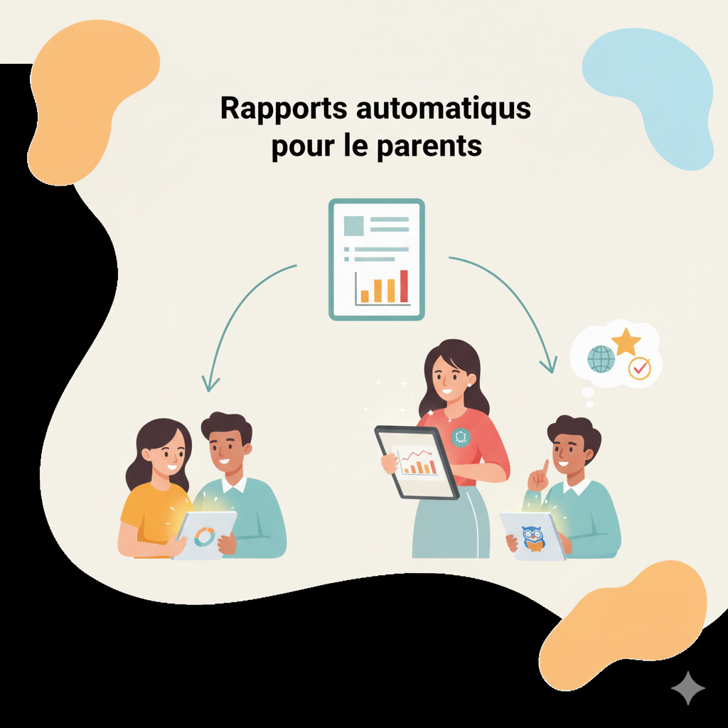 Pour chaque compétence identifiée, l'IA génère automatiquement des leçons, QCM, exercices et problèmes parfaitement adaptés au niveau de maîtrise des élèves. A la fin de la séance, un rapport automatique est généré pour les parents.